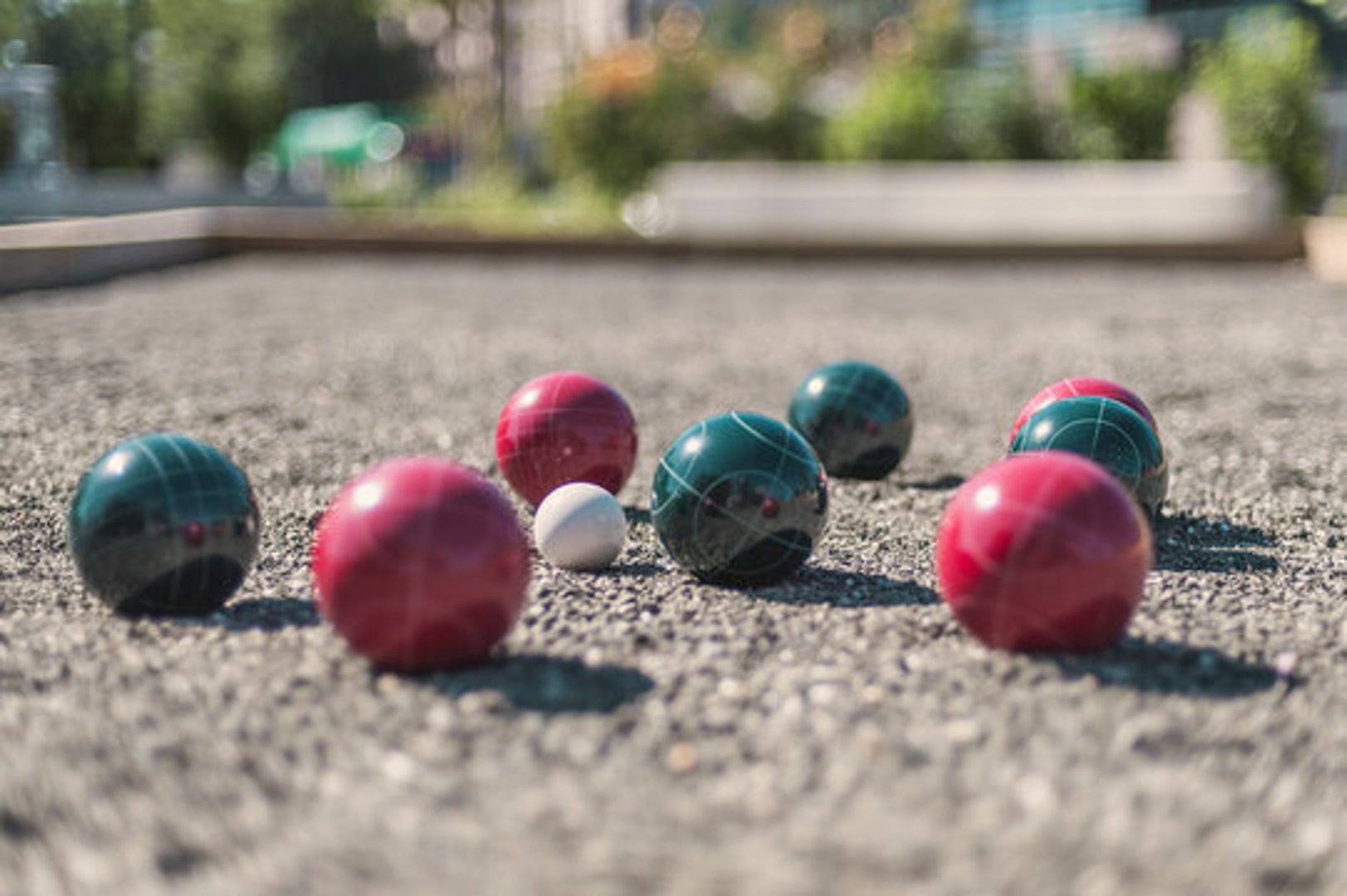 Bocce Ball is a popular & social game that originated in Italy, but is played all over Europe. Two teams are trying to throw their bocce balls as close as possible to the small white ball.
